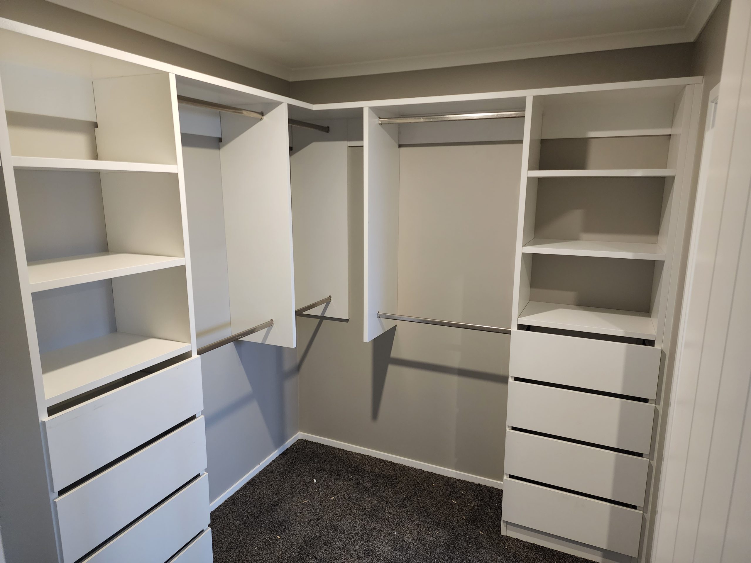 Professional installation of walk-in wardrobes, shelving systems, and custom storage solutions designed to maximise space and functionality.